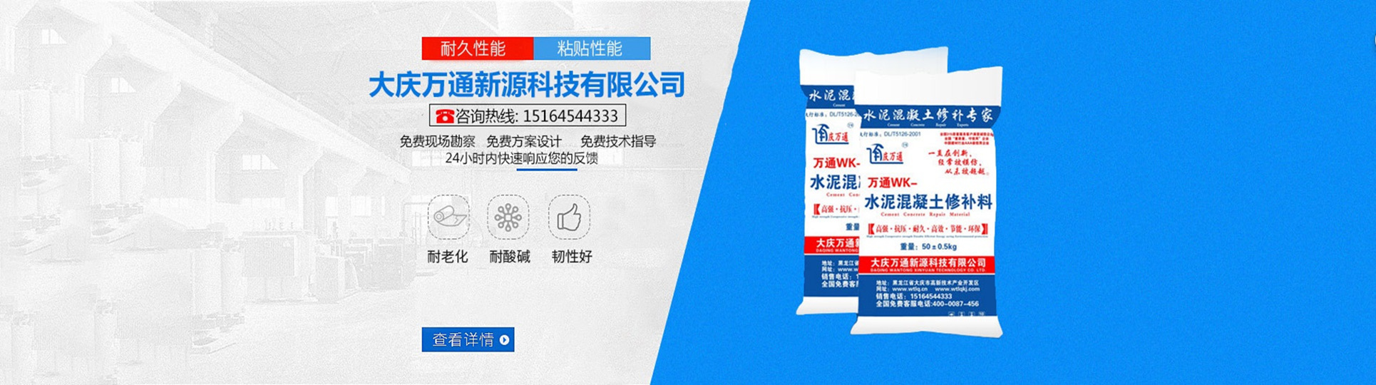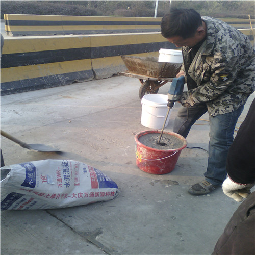 大慶萬通新源科技有限公司獨(dú)有的混凝土路面高強(qiáng)速補(bǔ)料,是水泥混凝土路面病害修復(fù)的好材料。疲勞、凍融循環(huán)、彎曲壓力、滲水和基層破壞等原因都會(huì)引起水泥路面的破損,從而帶來高昂的維護(hù)費(fèi)用。與以往的剛性修補(bǔ)方法不同,混凝土水泥路面維修速補(bǔ)膠提供了一種獨(dú)特的柔性修補(bǔ)產(chǎn)品和技術(shù),高柔性、高抗拉性,可跨伸縮縫施工和高抗壓性使得混凝土快補(bǔ)產(chǎn)品為水泥混凝土路面提供了******性的修補(bǔ)。傳統(tǒng)的剛性修補(bǔ)方案,如環(huán)氧砂漿和快干水泥產(chǎn)品,由于其自身的粘結(jié)失效,抗疲勞性低以及與原路面不同的伸縮系數(shù),修補(bǔ)面會(huì)在短時(shí)間內(nèi)失效或產(chǎn)生新的裂縫,需要反復(fù)修補(bǔ),有效期短且費(fèi)用高昂。大慶萬通新源科技有限公司的混凝土水泥路面維修速補(bǔ)膠可以隨原路面一起伸縮,移動(dòng),從而避免了粘結(jié)失效和產(chǎn)生新裂縫。萬通快補(bǔ)產(chǎn)品優(yōu)異的粘結(jié)性、柔韌性和高防滑性,特別適用于水泥路面的淺層粘合修補(bǔ),多邊角混凝土板層修補(bǔ),跨伸縮縫修補(bǔ)以及路面沉陷修補(bǔ)。萬通混凝土病害修補(bǔ)料針對(duì)混凝土起皮起沙、斷板裂縫、蜂窩麻面、坑槽露石子、漏筋掉皮、橋梁的掉皮漏筋快速通車使用時(shí)間長(zhǎng)。應(yīng)用萬通快補(bǔ)產(chǎn)品,施工后一天就可以恢復(fù)交通。大慶萬通新源科技有限公司的萬通水泥路面維修速補(bǔ)膠適用于高速公路、機(jī)場(chǎng)路面、農(nóng)村村村通路面、廠坪、學(xué)校操場(chǎng)、市區(qū)公路、小區(qū)路面、橋梁、水泥路面的修補(bǔ)。使用萬通特快補(bǔ)材料修補(bǔ)路面可以一勞永逸! 水泥地面起砂怎么辦,混凝土修補(bǔ)劑混凝土地面起砂,混凝土地面修補(bǔ),地面起砂怎么辦,